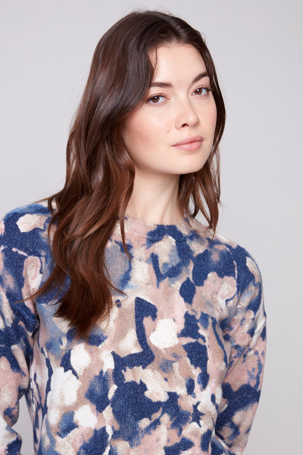 Charlie B Sweater C2546RR-918A-P862 Romantic – Reversible Printed Crew Neck Sweater