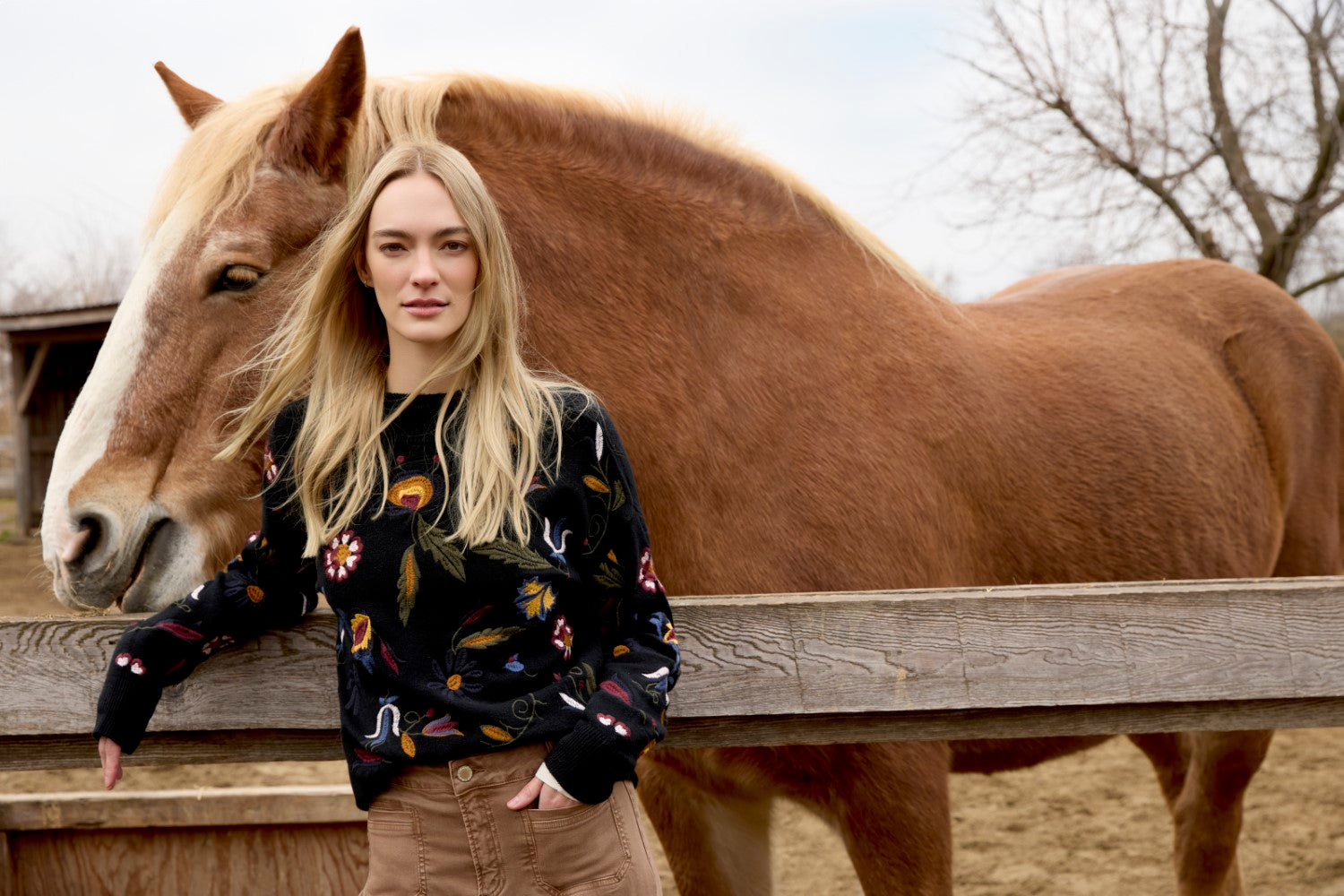 Bleiben Sie damit warm stilvoll bestickter Scheinhalspullover von Charlie B. mit a Schulterdesign fallen lassen Und zarte StickdetailsDieser schwarze Pullover verbindet gemütlichen Komfort mit erhöhtem Stil. Der entspannte Pass und weiche Strick machen es ideal zum Schichten an kühleren Tagen, während der Scheinhals einen Hauch moderner Raffinesse verleiht.