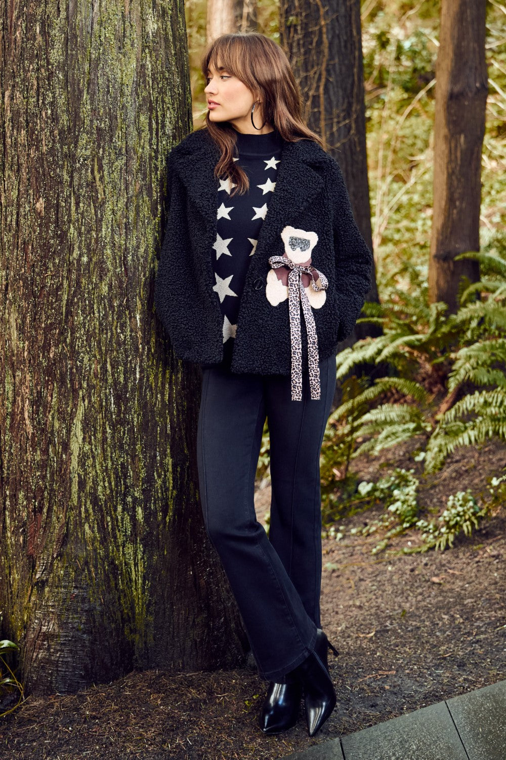 Frank Lyman Jacket 253878 – Black/Cheetah Faux Fur Casual Bear Detail Jacket