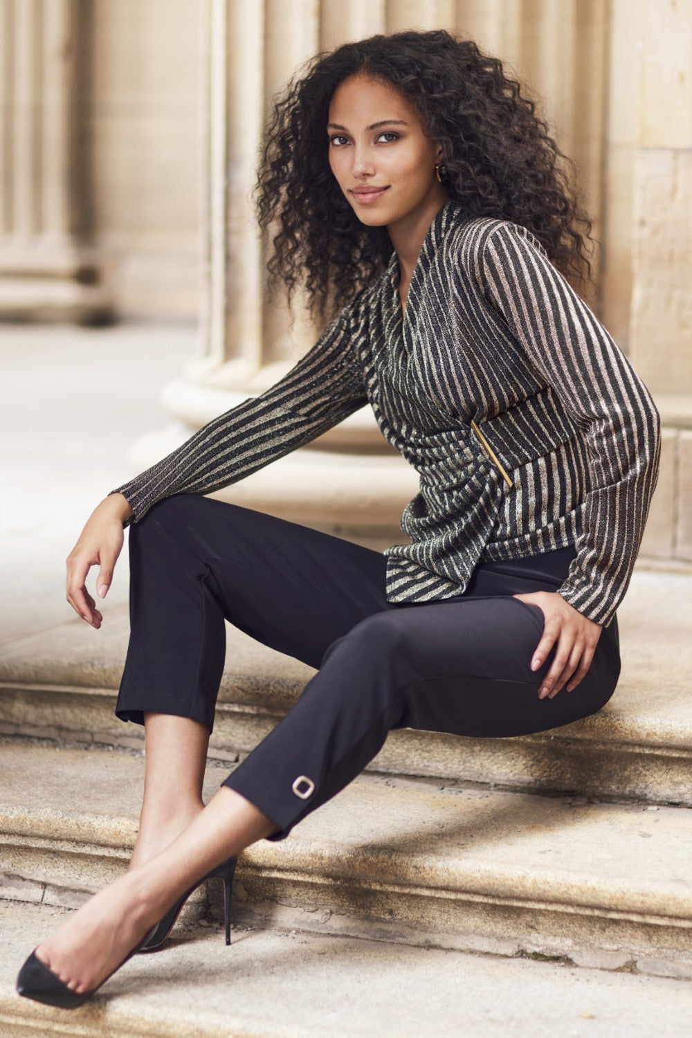 Frank Lyman Pant 254004 – Black Slim Cropped Pull-On Trousers