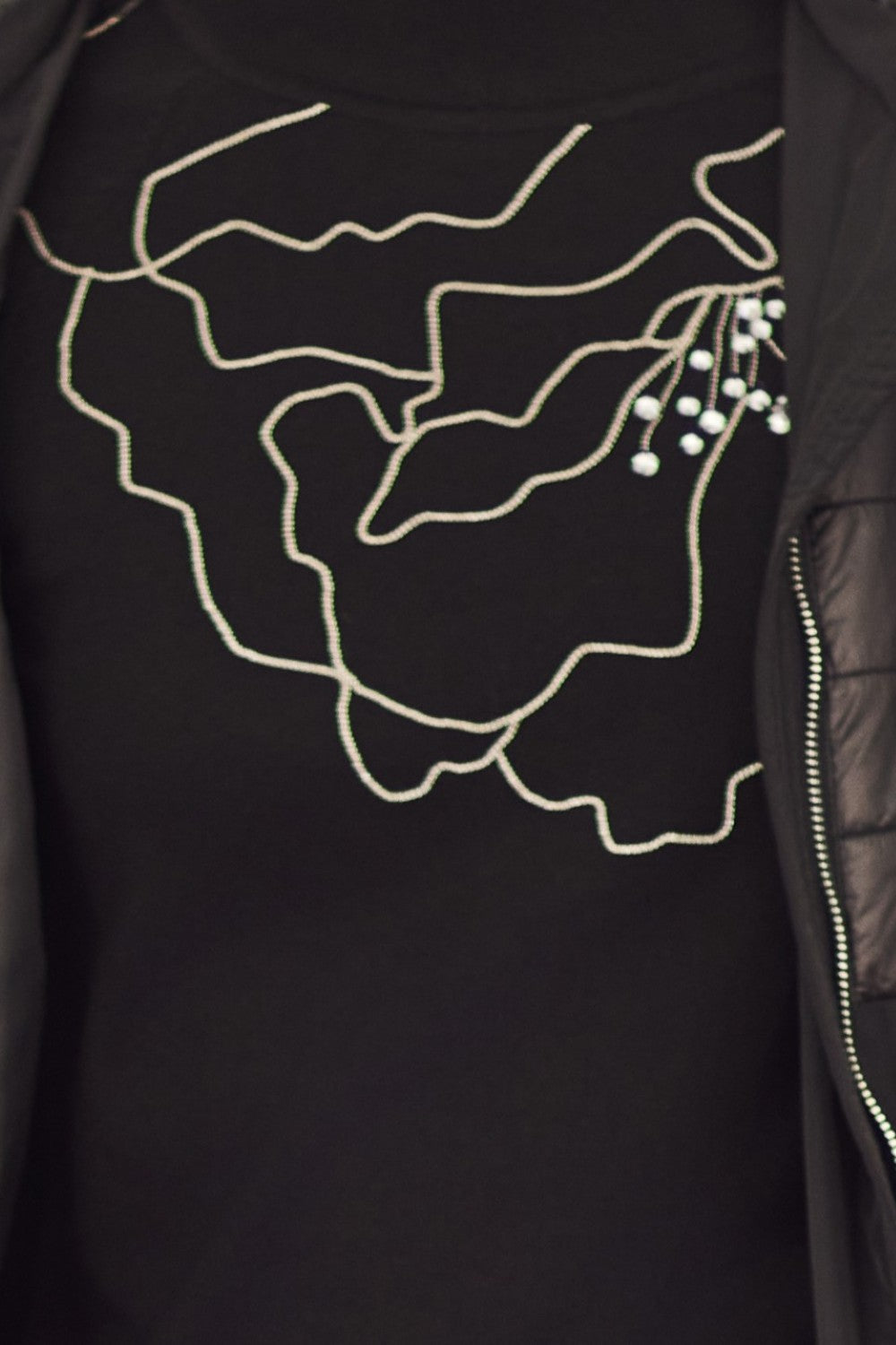 Elevate your wardrobe essentials with the Frank Lyman Sweater 254910 in Black. This floral mock neck pullover offers a hip-length, regular-fit silhouette perfect for casual outings or semi-formal occasions. Adorned with stunning floral embroidery and jewel embellishments, it adds a touch of sophistication while remaining effortlessly comfortable. The long straight sleeves and soft knit fabric make this top versatile for layering or standalone styling.