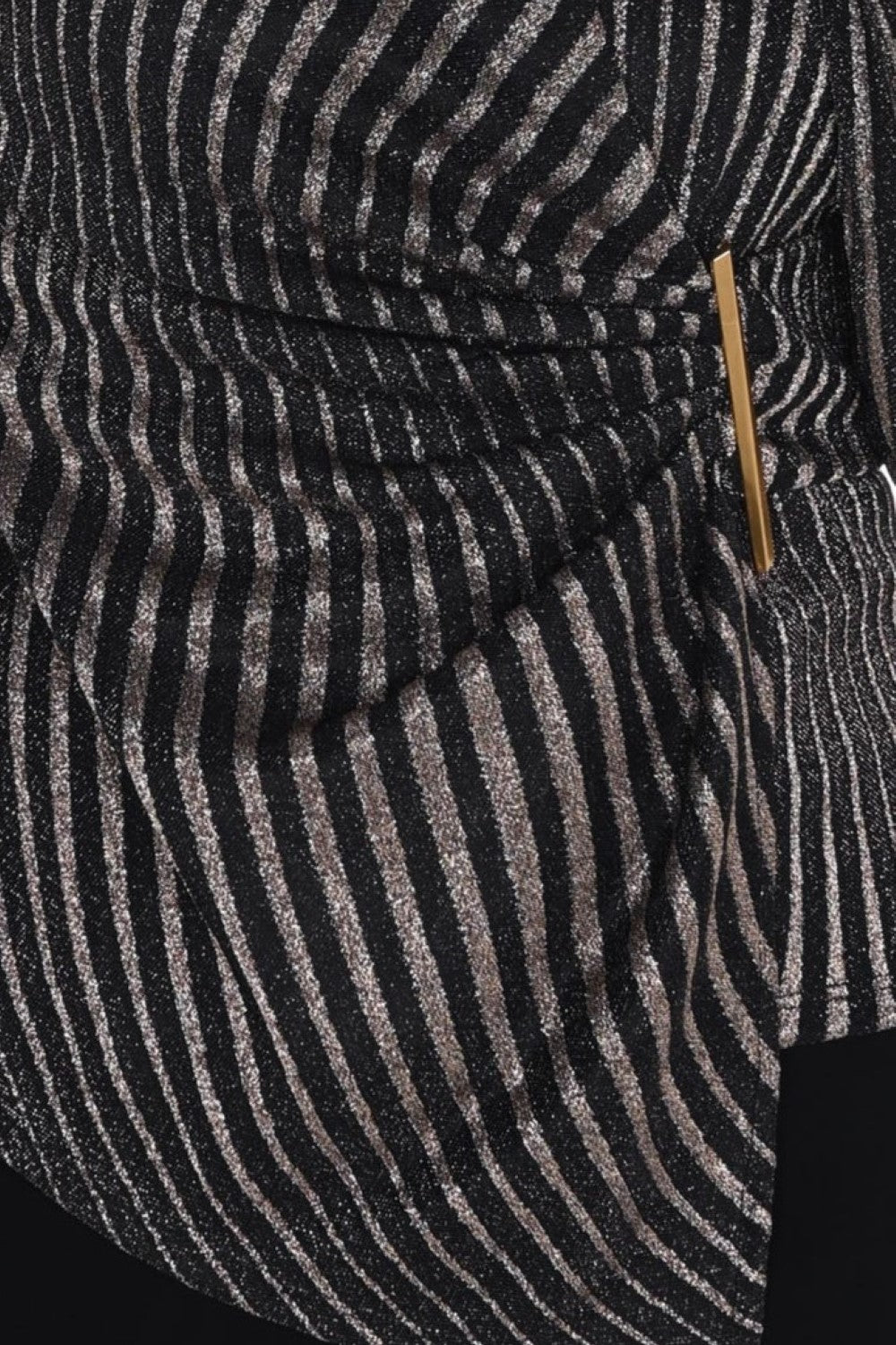 Frank Lyman Top 254251 Gold/Black – Metallic Stripe Wrap Knit Top for Evening and Special Occasions