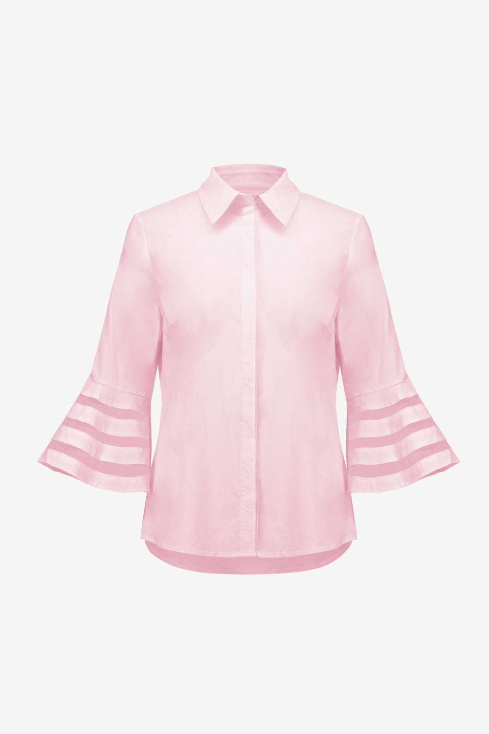 Joseph Ribkoff Blouse 261933 — Stretch Poplin Straight Blouse with Organza Bell Sleeves