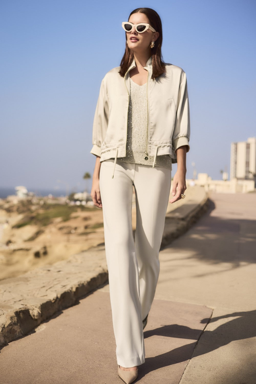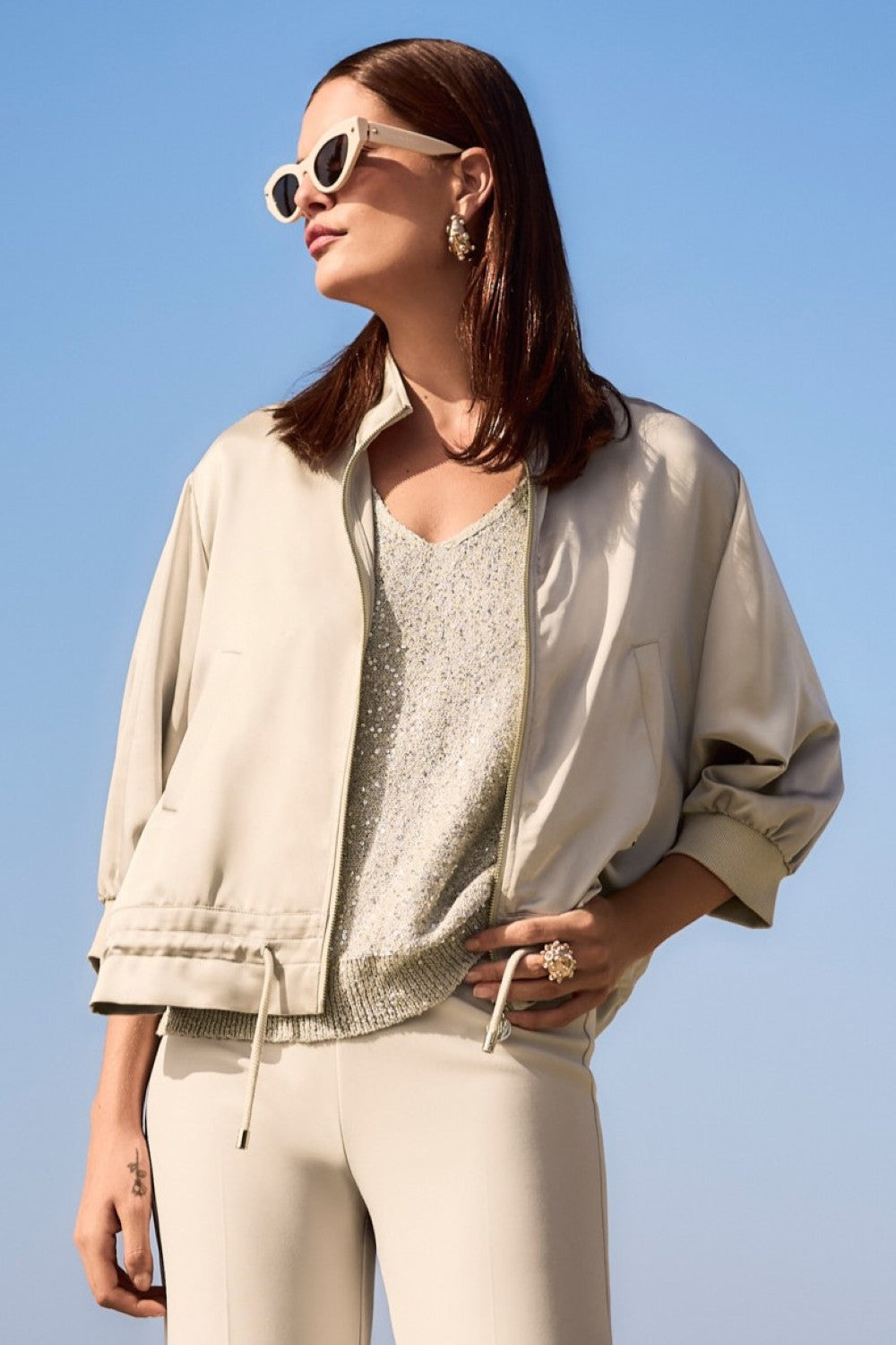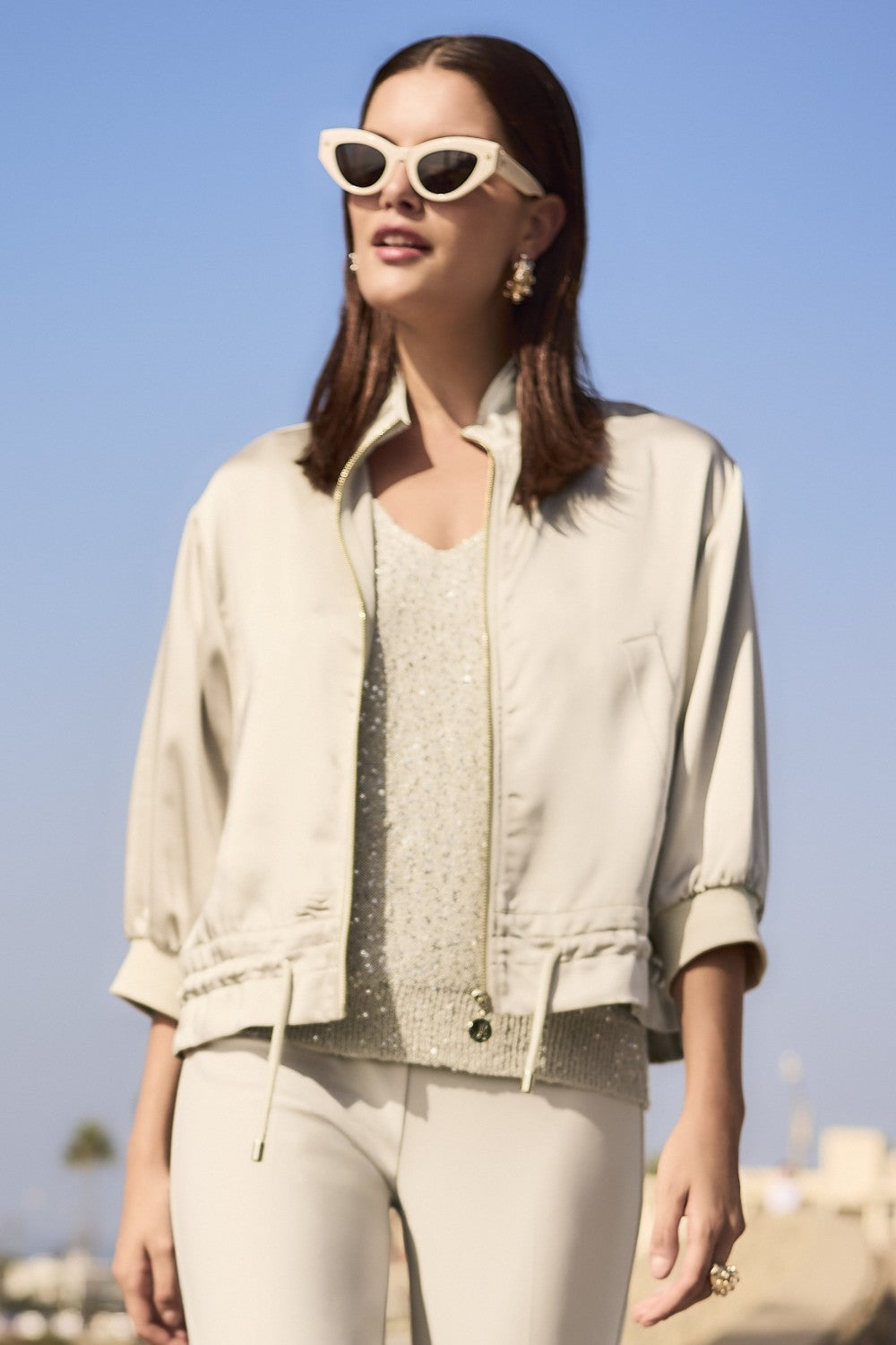 Joseph Ribkoff Jacke 261913 Mondstein — Satin-Blousonjacke im kastenförmigen Schnitt mit Kordelzug am Saum