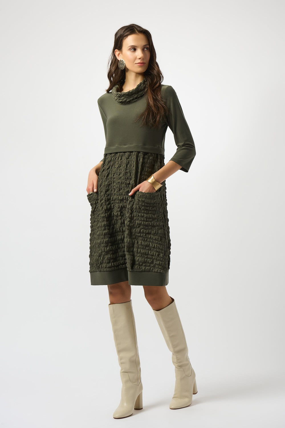 Einführung des Joseph Ribkoff -Kleides, Style 243114S25, eine exquisite Ergänzung zu jeder Garderobe, die Luxus und Raffinesse perfekt kombiniert. Dieses Kleid aus einer Premium -Mischung aus 98% Polyester und 2% Spandex enthält eine einzigartige Blase Jacquard -Stoff, die durch einen seidigen Strick ergänzt wird und sowohl Komfort als auch Eleganz bietet. In drei atemberaubenden Farben erhältlich-Midnight-Blau, Schwarz und Geranium-soll dieses Kleid ein Statement abgeben.