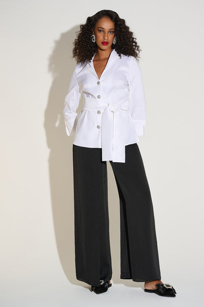 Joseph Ribkoff 253788-Blk-schwarze Satin-Weitbeinhose mit elegantem Overlay für müheloses Glamour