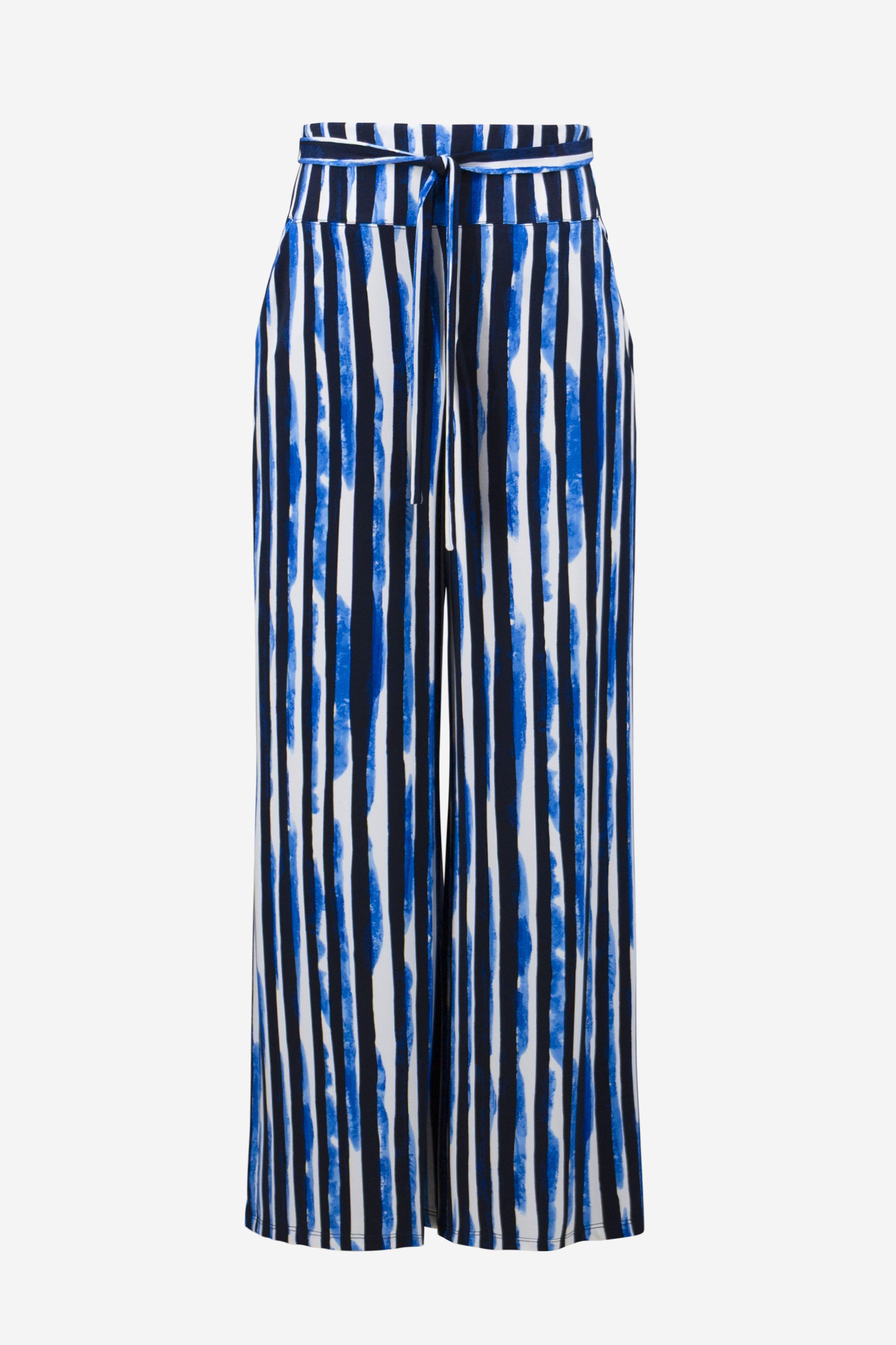 Joseph Ribkoff Pant 261292 Blue/Vanilla – Silky Knit Stripe Print Wide Leg Pull-On Pants