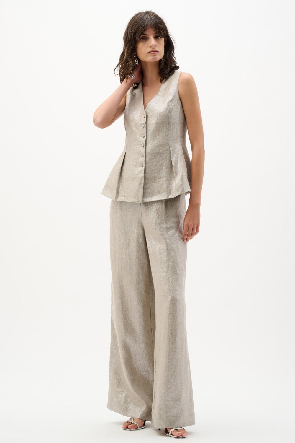 Joseph Ribkoff Hose 262947 Champagner — Leinenhose mit Folienprägung, weites Bein zum Hineinschlüpfen