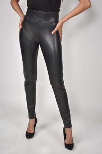 Step into ultimate style and comfort with Frank Lyman’s high-waisted skinny leggings. Crafted from high-shine faux leather, these full-length leggings offer a sleek, edgy look perfect for both casual outings and night events. Their plain pattern and minimalist design make them a versatile wardrobe staple that flatters every silhouette.