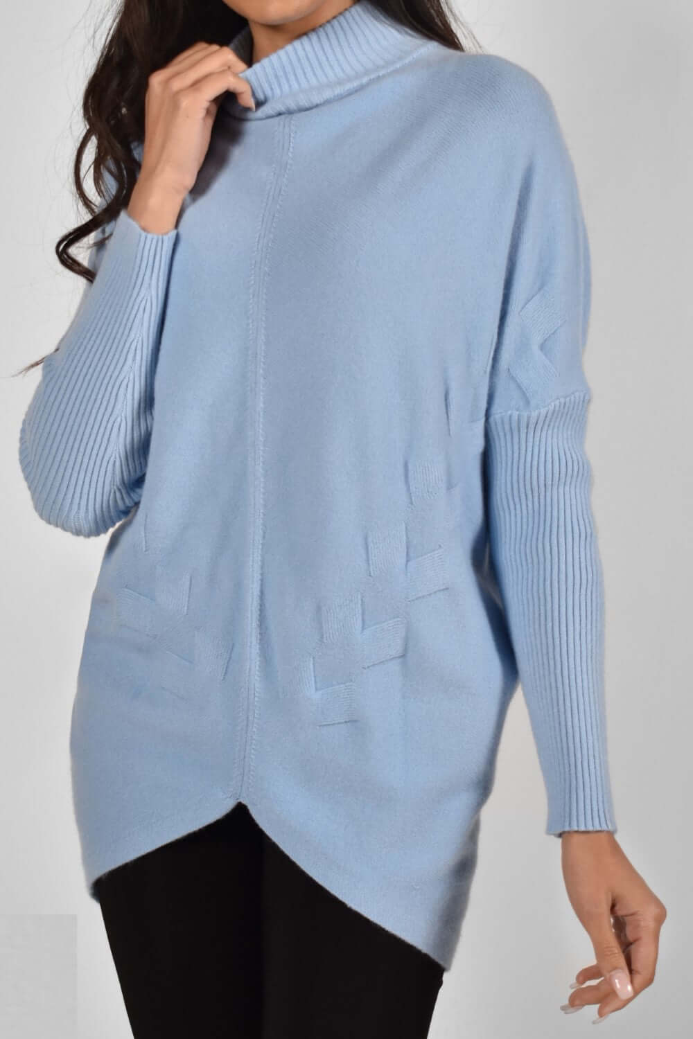 The sweater is easy to care for and can be hand washed in cold water. It has a length of approximately 30 inches, and the dolman sleeves measure 27 inches. This sweater is versatile and can be paired with different types of bottoms and footwear, making it suitable for various occasions.