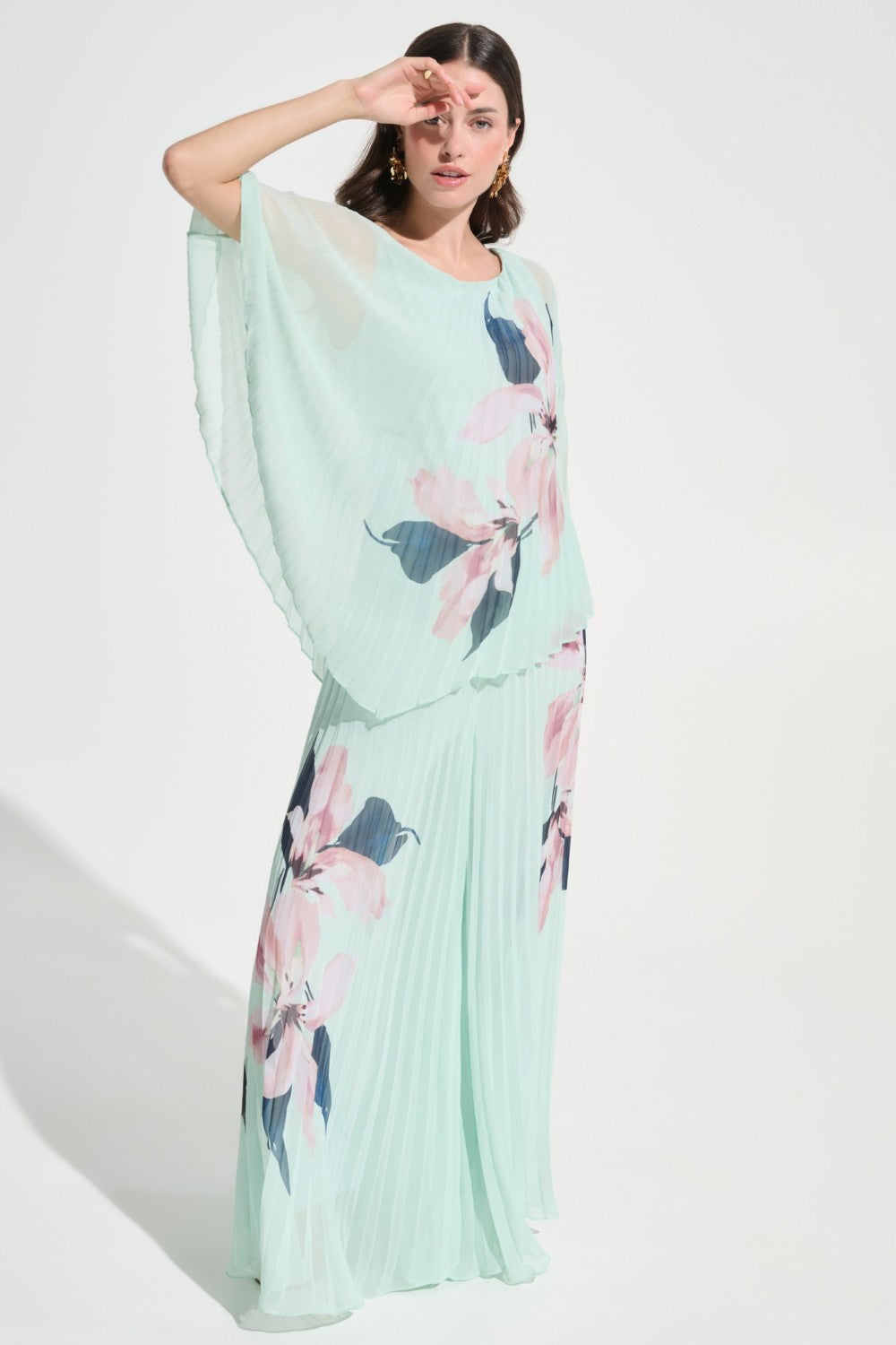 Joseph Ribkoff Top 262724 Green/Multi — Chiffon Floral Pleated Poncho Top