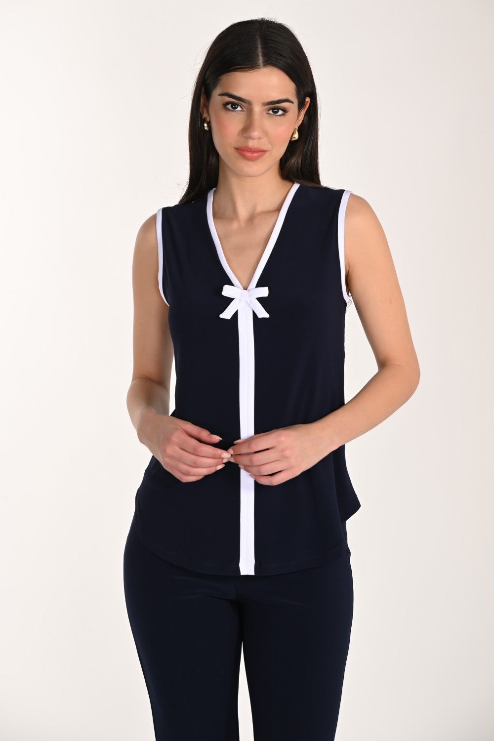 Frank Lyman Top 266021 Midnight/Blue — V‑Neck Sleeveless Pullover