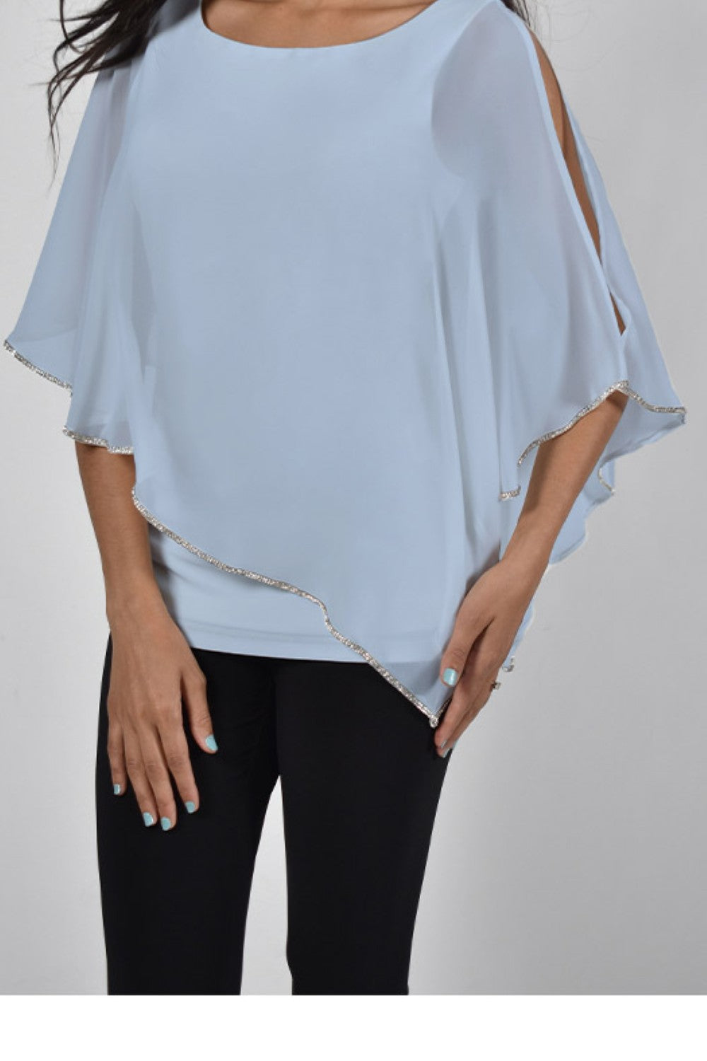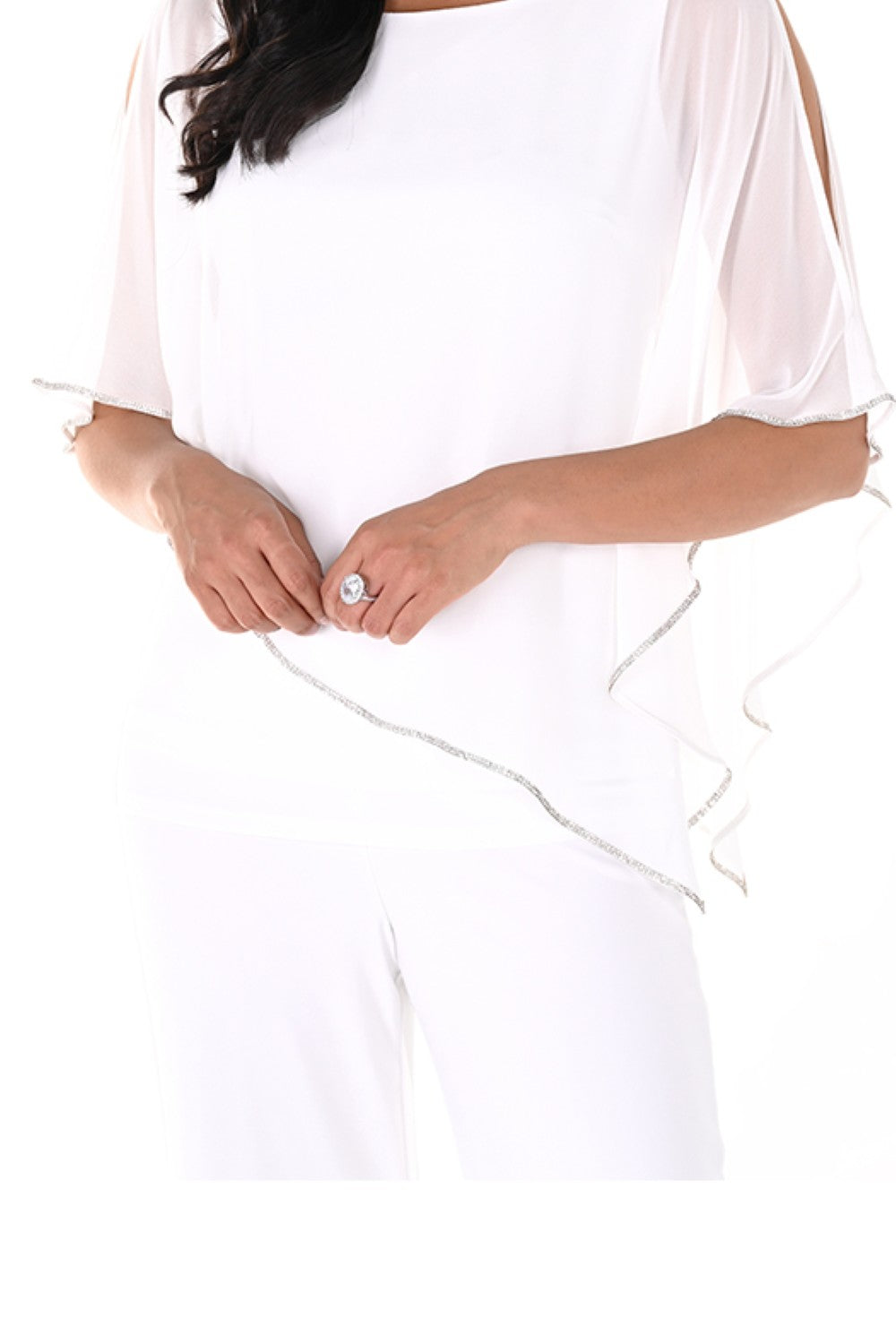 Le Lyman Top 185420 propose un élégant conception de pull avec des bords ornés d'argent, ajoutant une touche de glamour et d'unicité à votre ensemble. Le cou arrondi et la superposition asymétrique flatteuse créent un look chic et élégant, ce qui en fait un choix polyvalent pour diverses occasions.