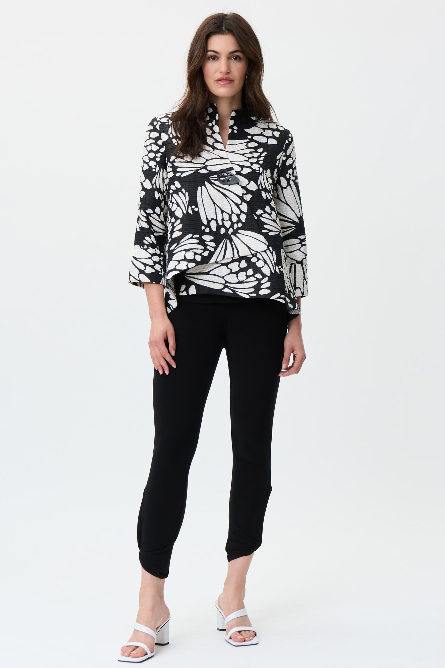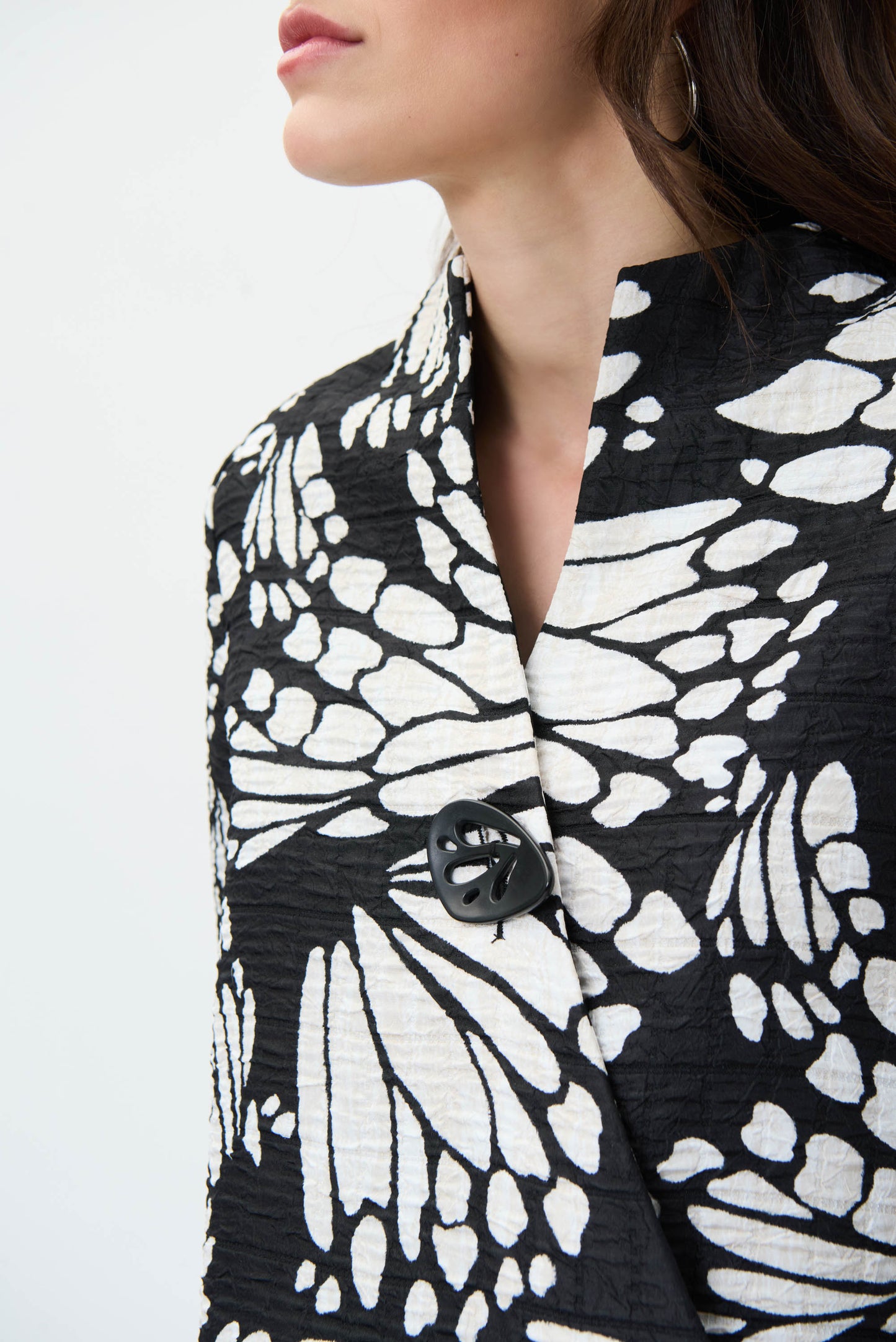 Présentation de la veste Joseph Ribkoff 231257 en noir / beige / crème, l'ajout ultime à votre garde-robe de printemps. Cette veste comprend un magnifique motif papillon, qui est l'impression la plus convoitée de la saison. Fabriqué à partir de tissu 100% polyester de haute qualité, cette veste promet à la fois le confort et la durabilité.