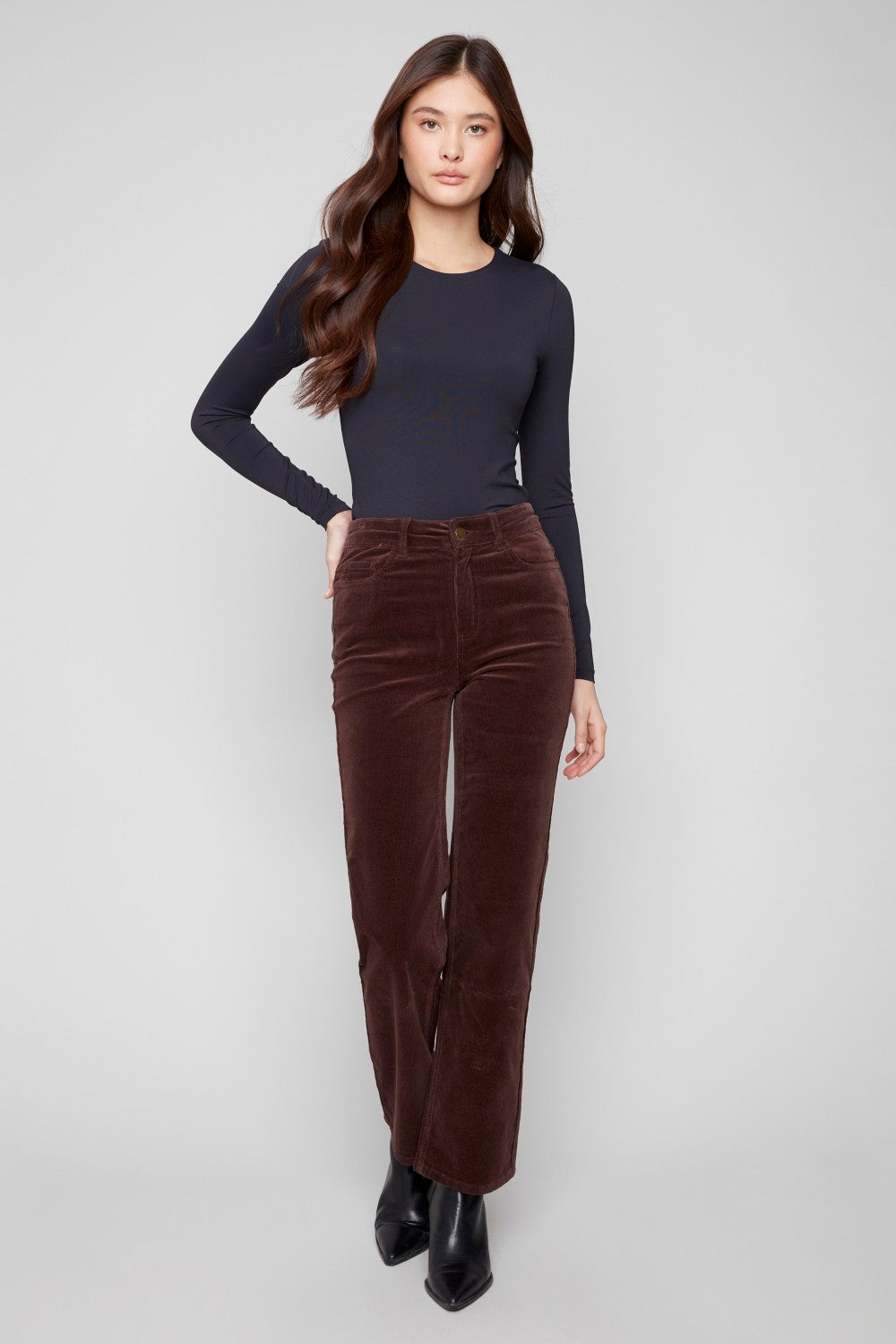 These Charlie B straight‑leg corduroy pants in Mocha feature a soft cotton‑spandex stretch corduroy, a comfortable regular rise, and a classic straight‑leg silhouette. Designed with a 30" inseam and 9" leg opening, they offer cozy comfort and everyday wearability.