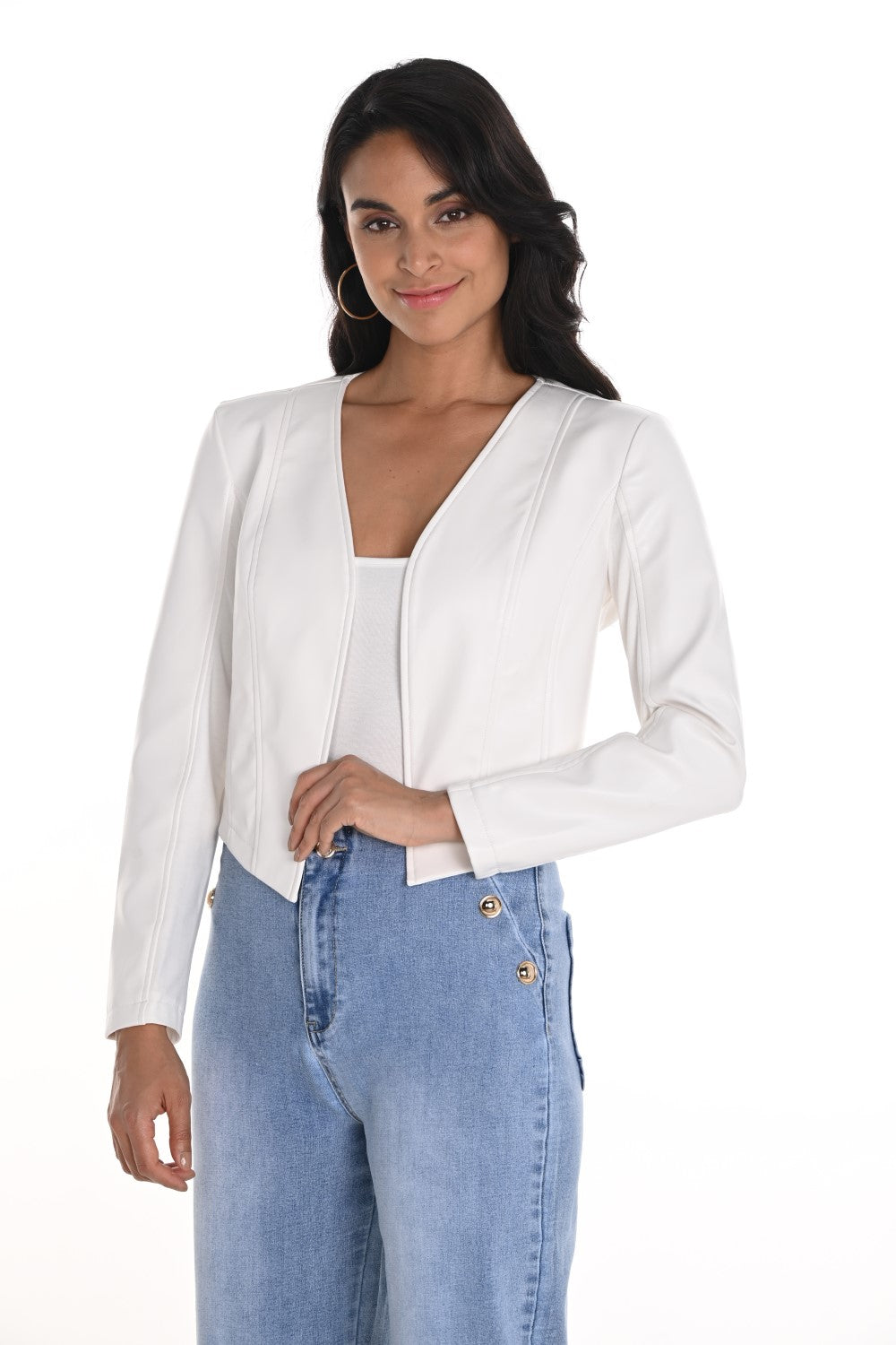 Refined and versatile, this Frank Lyman white jacket brings a polished finish to any outfit. Its feminine, modern design transitions effortlessly from the office to special occasions, offering a subtle statement of contemporary sophistication.