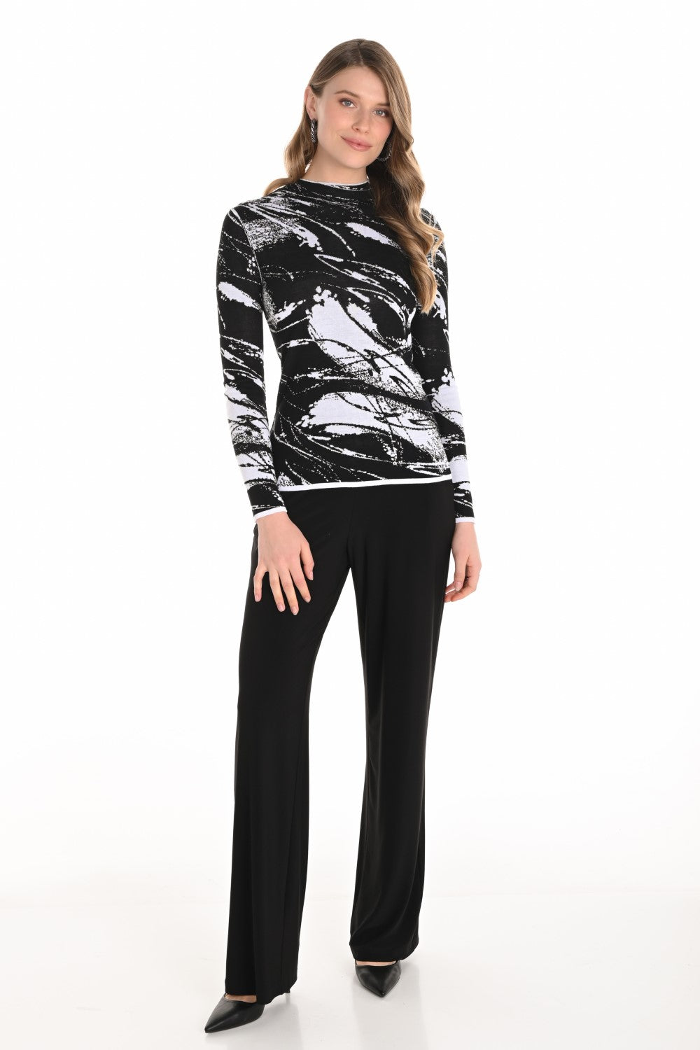 The Frank Lyman Knit Pant in Black is a must-have for your wardrobe, providing a comfortable and stylish fit for any occasion.