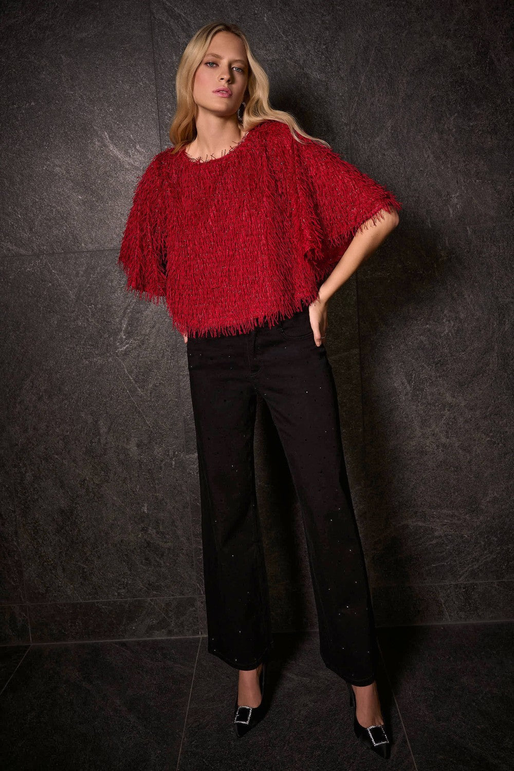 Shine with confidence in the Joseph Ribkoff Jeans 254962 Black, an elevated take on classic denim. Crafted from premium Featherweave® stretch denim, these wide leg pull-on jeans offer luxurious comfort and a flattering drape. The all-over rhinestone embellishments add just the right amount of sparkle, making them a standout choice for both casual and dressy occasions.
